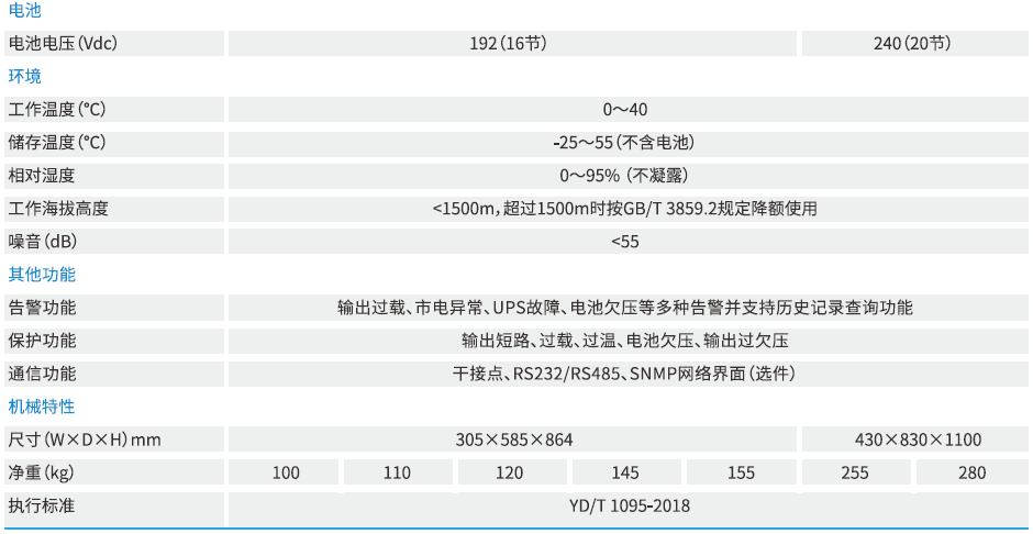 工作方式:三进单出工频在线式;功率范围:6kVA~30kVA